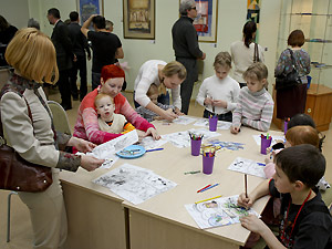 Всем желающим предоставлена возможность сотворчества. Автором подготовлен комплект раскрасок, и каждый сможет создать свой вариант картины. Также можно попробовать себя в роли мастера, продолжив вязаные картины, начатые Мариной Кутявиной. Совместное творчество будет представлено после завершения работы выставки на сайте MARIKU.RU