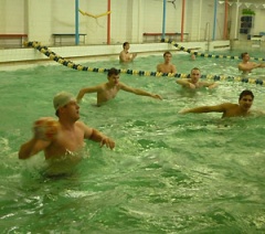 Лучшая команда определялась по сумме времени всех участников на дистанции 50 м вольным стилем + сумма времени эстафетного плавания + результат игры в водное поло.