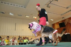 Яркие парики, модные платки, платья, стильные очки, бусы и даже шляпы – такие необычные наряды и аксессуары продемонстрировали 23 марта четвероногие участники дог-шоу «Мохнатый шик-2014 – Модный принт». Креативная задумка Молодёжного центра всегда собирает большое количество зрителей, особенно малышей. Вот и теперь в зале клуба «Ритм» было много семей с детьми.