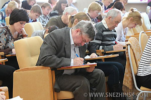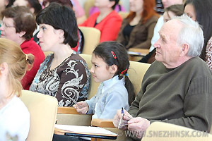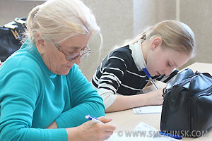 Диктант проходил на двух площадках: в помещении Снежинского городского музея и отделе интеллектуального досуга городской библиотеки. Так что всем, кто желал принять участие в акции, нашлось место. Диктовали текст филологи: Светлана Станиславовна Грицкова, в прошлом учитель русского языка и литературы, ныне — корректор в газете «Окно» и Татьяна Николаевна Гильгенберг, учитель русского языка и литературы школы № 135.