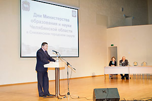 Сегодня в Снежинске в рамках Дней Министерства образования и науки Челябинской области побывал министр А. И. Кузнецов. Встреча министра с руководством города, педагогической общественностью, представителями депутатского корпуса и профсоюза прошла в актовом зале школы №135. Тема встречи – исполнение органами местного самоуправления полномочий в сфере образования.