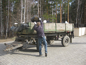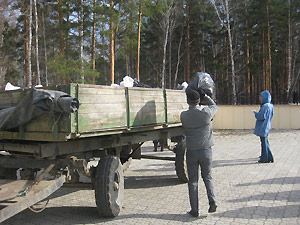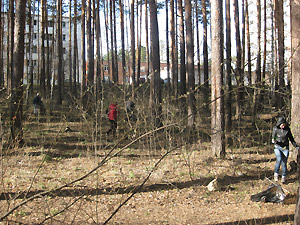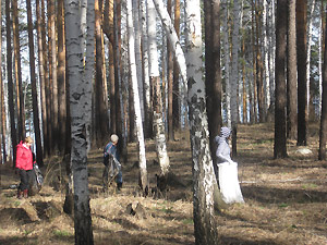 По сложившейся за много лет традиции, сотрудники убирают участок за площадью Победы. Вот и в этот раз, вооружившись большими мешками и перчатками, широкой цепью вышли на борьбу с мусором. В основном, горки отходов наблюдались возле упавших стволов деревьев, где отдыхающие на природе компании разводят костры. На этих «стоянках древних людей» можно было увидеть банки, бутылки, пачки из-под сигарет, одноразовую посуду и даже детские памперсы. Видимо, кто-то берёт с собой в лес малышей, присутствие которых нисколько не мешает взрослым пить и мусорить. Вокруг некоторых таких стоянок под ногами хрустело битое бутылочное стекло.