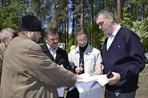 Пока будет строиться большой храм, рядом с площадкой, ближе к стоянке по ул. Транспортной, возведут временный деревянный храм. Он будет похож на храм войсковой части, хотя и немного меньше по размеру. Предположительно, его строительство займет около полутора месяцев, так что временный храм может появиться уже этим летом. Всё это обсудили на этой неделе на совещании на месте строительства будущего храма.