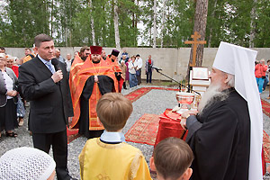 Феофан сердечно поблагодарил главу города Снежинска А. Н. Тимошенкова, главу администрации В. Б. Абакулова, директора института М. Е. Железнова и других руководителей за помощь в великом деле строительства храма.