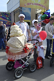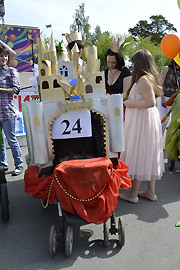 В колонне, которая двигалась по ул. Ленина до Парка культуры и отдыха, шествовали около ста человек, а колясок было 33. Как всегда, молодые родители проявили смекалку и фантазию, превратив свои коляски в произведения прикладного искусства.