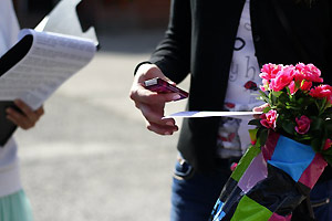 Прохожие, как и предполагалось, реагировали по-разному: кто-то просто проходил мимо, кто-то с любопытством подходил сам, но многие всё же доброжелательно отнеслись к данному мероприятию и с удовольствием уделили пару минут участию в акции.