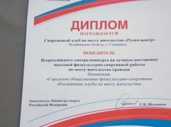 4 июля во Дворце спорта состоялось торжественное награждение спортивного клуба «Русич» при Снежинской городской общественной организации «Русич-центр» (руководитель Игорь Валентинович Молоткевич) грамотой Министра спорта Российской Федерации.