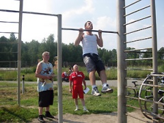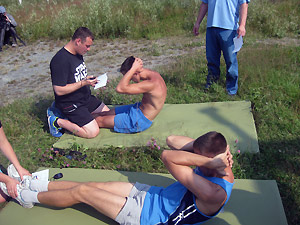 - для мужчин – подтягивание из виса на высокой перекладине, рывок гири, поднимание туловища из положения лежа на спине (за 1 мин), наклон вперед из положения стоя с прямыми ногами и стрельба из пневматической винтовки;