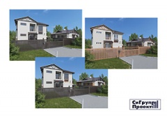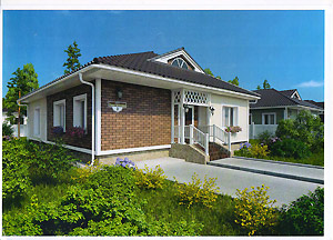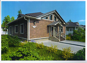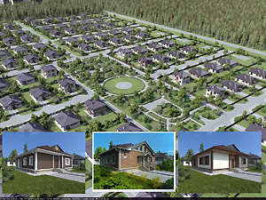 Второй вариант предусматривает возможность отделки фасадов по трем вариантам, которые гармонично сочетаются друг с другом и делают застройку более разнообразной. Вдоль улицы Забабахина размещаются двухэтажные коттеджи с различным цветовым решением фасадов.
