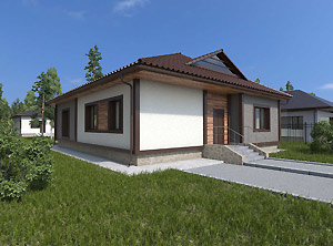 Особенностью первого варианта является то, что все дома отделаны в одном стиле (однотипный вариант отделки фасадов), вдоль улицы Забабахина размещены двухэтажные коттеджи также с однотипным видом отделки фасадов.