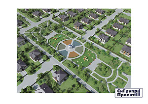 На территории жилой группы выделена территория совместного использования, где организованы площадки для отдыха детей и взрослого населения, занятий спортом и озеленения.
