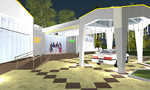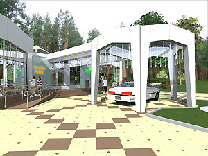 Пока в большинстве случаев и производственная и бытовая деятельность человека, а также его досуг в нашем городе протекают в производственных, жилых и общественных зданиях в виде параллелепипедов. Поэтому, для создания более динамичного архитектурно-художественного пространства здания, в основу формообразования планировочной и пространственной структуры здания заложены треугольник и пирамида. В одноэтажном объеме здания компактно сочетаются три функциональных зоны:
