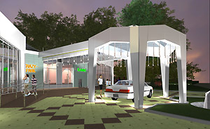 В связи с тем, что данный предприниматель зарекомендовал себя с положительной стороны, кафе пользуется спросом у жителей города, к рассмотрению членам Совета предложен эскизный проект предприятия общественного питания с залом аттракционов (объект капитального строительства) для принятия решения о возможности разделения сформированного земельного участка на два: