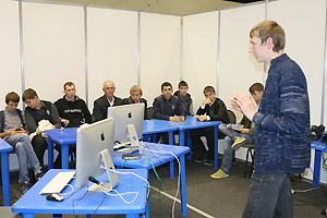 На мастер-классе С. М. Шляга, заместитель директора гимназии, поделился опытом развития конструкторских навыков школьников в летнем робототехническом лагере, а гимназисты продемонстрировали футбол роботов и приняли участие в соревнованиях роботов.