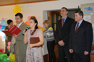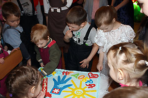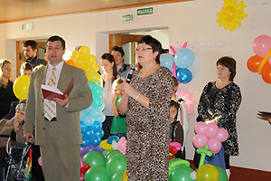 Виновников торжества поздравил глава города А. Н. Тимошенков. «Общественной организации "Бумеранг добра" исполнился один год, - сказал Анатолий Николаевич. - Возраст совсем небольшой, но сделано уже очень много. За это время активные молодые родители, которые воспитывают особенных малышей, сумели объединиться и привлечь в свои ряды многих неравнодушных людей. Этот социальный проект получил поддержку города: организации предоставлено помещение, выделена субсидия. Конечно, мы и впредь будем всячески поддерживать это благое начинание. В ваш первый день рождения хочется пожелать вам терпения, веры и главное – не иссякающей любви. Любящие руки могут творить чудеса. Мира и благополучия вашим семьям, здоровья и успехов вашим детям!»