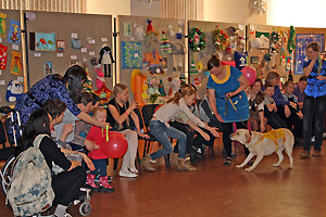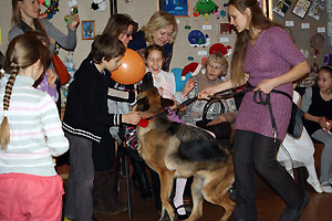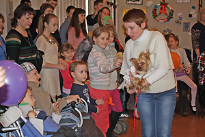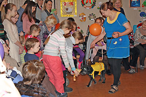 В праздничных мероприятиях также приняли участие канис-терапевты из Екатеринбурга со своими питомцами. Малыши с удовольствием и интересом пообщались и поиграли с собачками.