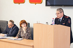 Сегодня состоялось 93 заседание Собрания депутатов. Вначале депутаты заслушали отчёт о деятельности отдела МВД за 2014 год. Начальник отдела Р. Р. Сафин в своём выступлении привёл показатели, характеризующие состояние преступности на территории города, отметив, что оперативная обстановка остаётся стабильной. За 12 месяцев прошлого года не было совершено убийств и изнасилований, в два раза сократилось количество таких преступных деяний, как умышленное причинение тяжкого вреда здоровью.