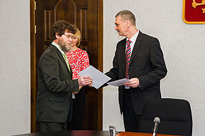 1 апреля исполнилось 15 лет отделу экологии администрации города Снежинска. Сегодня коллектив отдела с юбилейной датой поздравил заместитель главы администрации И. И. Сапрыкин. «Отдел экологии работает как пожарная команда», - отметил Игорь Ильич слаженную, оперативную и качественную деятельность своих коллег в решении различных проблем в жизни города. Почётные грамоты главы администрации вручены: главному специалисту И. В. Босоноговой, главному специалисту С. Н. Курочкину, начальнику отдела А. Б. Горелову.