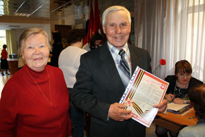 Приглашённых тепло и приветливо встретили работники УСЗН и депутаты Собрания депутатов. Пожилым людям вручили письма от губернатора и руководства города, поздравили с наступающим юбилеем великого праздника и показали прекрасный концерт, который подготовили воспитанники и педагоги ДМШ.