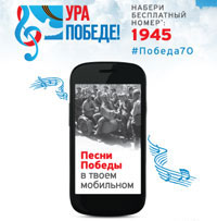 - установить в качестве гудка своего телефона одну из мелодий песен военных лет и подключиться к мобильному сериалу «Этот День Победы», позвонив на бесплатный номер 1945;