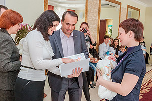 С этим важным событием родителей тепло поздравили начальник отдела ЗАГС администрации города Снежинска Н. В. Адамкевич, депутат Собрания депутатов города Снежинска И. А. Балашова, заместитель начальника УСЗН И. В. Мальцева. По традиции, семьям вместе с документом о рождении вручили мягкую игрушку, эксклюзивную поздравительную открытку, цветы и единовременную материальную помощь в размере 3 000 рублей.