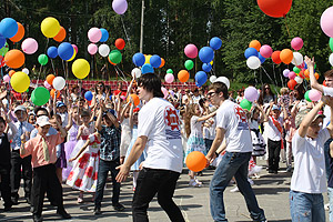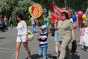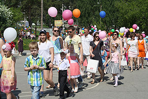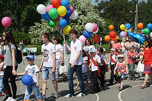 Ребята вместе с родителями прошествовали по стадиону «Комсомолец». После приветствия каждого детского сада малыши вместе со своими старшими товарищами – студентами исполнили весёлый танец, а затем выпустили в небо воздушные шары. Завершился праздник конкурсом рисунков на асфальте.