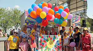 Изображения разноцветных детских ладошек, которые дети наклеили на большой лист, стали лучиками одного общего солнца. Под восторженные крики и аплодисменты детей и взрослых сотня разноцветных шаров увлекла в небо наше самодельное солнышко. Все сразу почувствовали, как стало ярче и веселее. В такие моменты сплоченности всегда ощущаешь всю полноту и значимость одной общей идеи: «Мы вместе!».