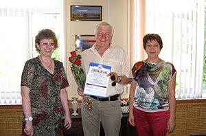 4 июня начальник УПФР в городе Снежинске Наталья Федоровна Четвергова вручила Пенкину Анатолию Николаевичу (директору ООО «Спецлифтремонт»), победителю конкурса «Лучший страхователь» в категории страхователей до 100 человек, почетный диплом, подписанный Председателем Правления ПФР Антоном Дроздовым и управляющими ОПФР по Челябинской области Виктором Чернобровиным.