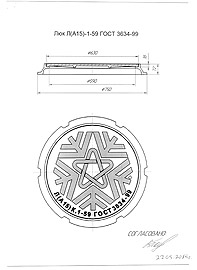 2. Эскиз для изготовления оснастки по отливке чугунных люков для подземных колодцев (для применения на сетях микрорайонов 22а и 22б в г.Снежинске). (Заказчик ООО «Матрикс», Глухов С.Н.)