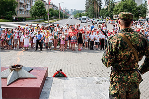 В Снежинске на площади Победы состоялся памятный митинг с возложением цветов к мемориалу Воина-Победителя, вечному огню и мемориальным доскам городов-героев.