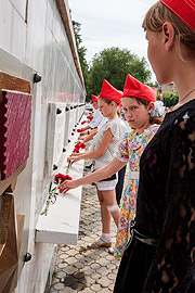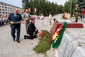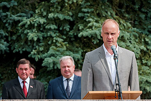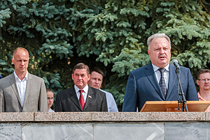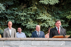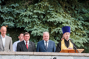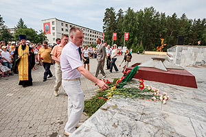 На торжественном митинге с обращениями выступили глава Снежинского городского округа А.Н. Тимошенков, глава Администрации Снежинского городского округа В.Б. Абакулов, заместитель директора ФГУП «РФЯЦ-ВНИИТФ» им. академика Е.И. Забахина О.А.Голиков, священник храма Преподобного Сергия Радонежского иерей Павел Беспалов, председатель общественной организации «Память сердца» А.С.Жукова.
