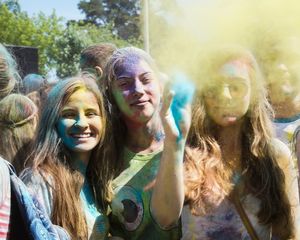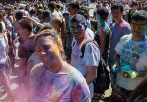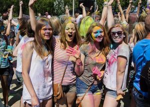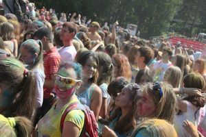 В полдень на стадионе Комсомолец царили беззаботность, радость и веселье, единение молодежи. Все смеялись, пели и танцевали. Красили друг друга, желали счастья. Надолго молодежь запомнит эти минуты счастья.