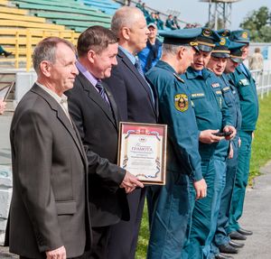 Председатель судейской коллегии соревнований, заместитель начальника Уральского регионального центра МЧС России Валерий Алексеевич Устинов вручил главе Снежинского городского округа А. Н. Тимошенкову и главе администрации В. Б. Абакулову Почётные грамоты Федерального Собрания Российской Федерации, Комитета по физической культуре, спорту и делам молодёжи, за большой вклад в развитие спорта и проведение спортивных мероприятий спецподразделений Федеральной противопожарной службы МЧС России.