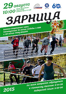 29 августа 2015 года в Снежинске стартует военно-спортивная игра «Зарница», посвященная 70-летию Победы в Великой Отечественной войне и 60-летию РФЯЦ ВНИИТФ.