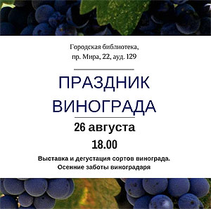 26 августа, в 18.00, городская библиотека и клуб «Уральская лоза» приглашают на «Праздник винограда». Это будет яркий праздник, совмещённый с дегустацией лучших сортов винограда, выращенных на Урале.