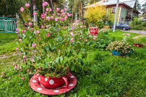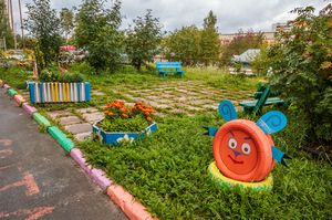Цветущий ландыш и тюльпаны из пластиковых бутылок, чайник и чашки-клумбы, невиданные животные и герои любимых мультфильмов – всё это и многое другое можно увидеть во дворах, ставших победителями ежегодного городского конкурса на самый благоустроенный двор.