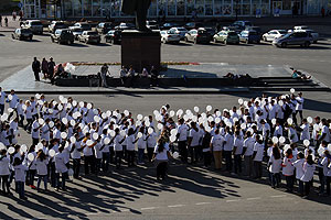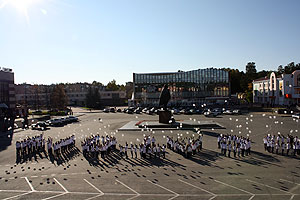 14 сентября студенты СФТИ НИЯУ МИФИ участвовали в флешмобе, посвящённом 70-летию атомной отрасли России. Они изображали слово «Росатом», а также снежинку – символ с герба Снежинска. Всё это снимали на видеокамеры – в земли и с воздуха.