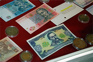 Особое внимание посетителей привлекает килограммовая серебряная монета номиналом 100 рублей. Отдельные витрины посвящены деньгам Украины и США. Вы также можете увидеть деньги, посвященные олимпиаде в Сочи, и различные коллекционные наборы монет. Выставку украсили два денежных дерева – серебряное и золотое из монет царской России.