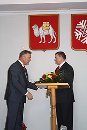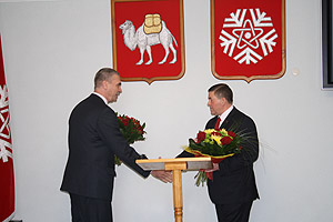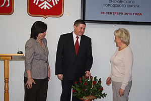 Главу города А.Н. Тимошенкова поздравил директор ФГУП «Российский Федеральный Ядерный Центр Всероссийский НИИ технической физики имени академика Е.И. Забабахина» М.Е. Железнов. Он отметил, что на протяжении последних десяти лет общими усилиями удалось выстроить абсолютно доверительные отношения между руководством Ядерного Центра, Собранием депутатов и городской администрацией. «Думаю, что в этом залог будущего успеха и позитивных изменений в жизни города», - сказал Михаил Евгеньевич.