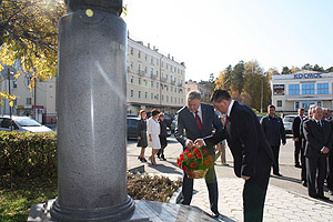 Затем, по сложившейся традиции, участники церемонии возложили цветы к памятникам основателям города.