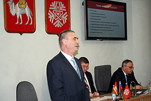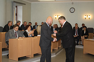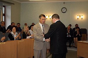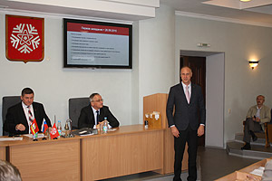 Главу города, его заместителя и всех депутатов поздравил и пожелал успешной работы директор Ядерного Центра Михаил Евгеньевич Железнов.
