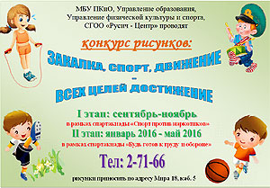 МБУ «ПКиО», Управление образования, Управление физической культуры и спорта, спортивный клуб «Русич» проводят конкурс рисунков «Закалка, спорт, движение – всех целей достижение».