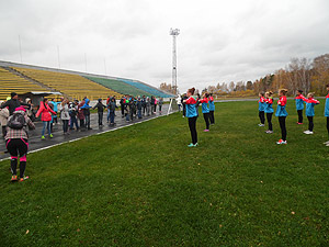 Сначала участников поприветствовала группа поддержки черлидинга, затем девушки провели небольшую разминку. А после разминки участники дружно прошли дистанцию. На финише каждый участник получил сувенир. И несмотря на усилившийся дождик, все участники мероприятия получили заряд бодрости и хорошего настроения.