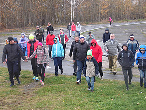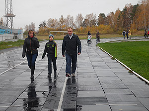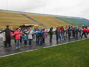 86 снежинцев также присоединились к этому мероприятию, и в 11 часов, приняв эстафету из Омска, одновременно со столицей Урала прошли по стадиону им. Ю.А. Гагарина два километра.