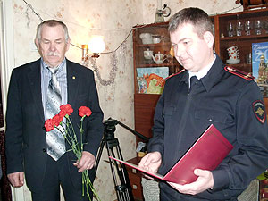 В честь 73-й годовщины победы в Сталинградской битве 2 февраля состоялась встреча с одним из ветеранов Великой Отечественной войны, полковником милиции в отставке Саблиным Н.А. Сотрудники УСЗН, МУ «КЦСОН», городского совета ветеранов, ОМВД России по ЗАТО г. Снежинска, председатель совета ветеранов ОВД поздравили Николая Алексеевича со знаменательной датой, пожелали крепкого здоровья, бодрости духа, оптимизма и вручили цветы и памятные подарки.