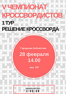 Городская библиотека приглашает горожан блеснуть эрудицией и принять участие в Vчемпионате по решению кроссвордов. 28 февраля, в 14.00, состоится первый тур.