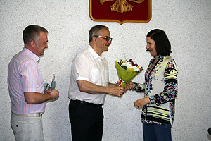 27 мая состоялось торжественное награждение победителей городского конкурса «Лидер признания потребителей». Руководителям предприятий и организаций, завоевавших симпатии горожан, заместитель главы города Олег Карпов и заместитель главы администрации Дмитрий Востротин вручили памятные знаки с символикой города и цветы. К слову, эти прекрасные букеты были изготовлены одним из победителей конкурса – магазином «Флорина» (лидер в номинации «Розничная торговля цветами, подарками, сувенирами»).