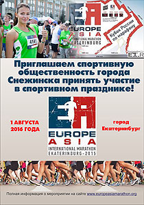 1 августа 2016 года в Екатеринбурге состоится один из крупнейших марафонов России, Второй международный легкоатлетический марафон «Европа-Азия».