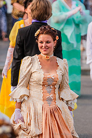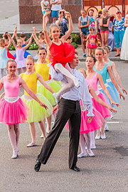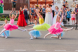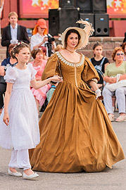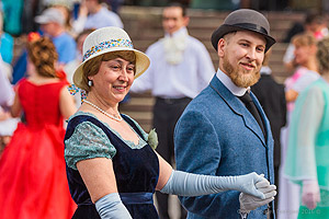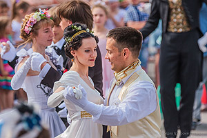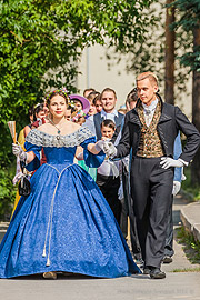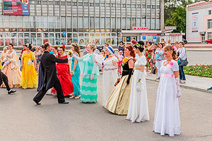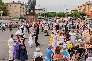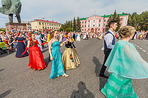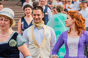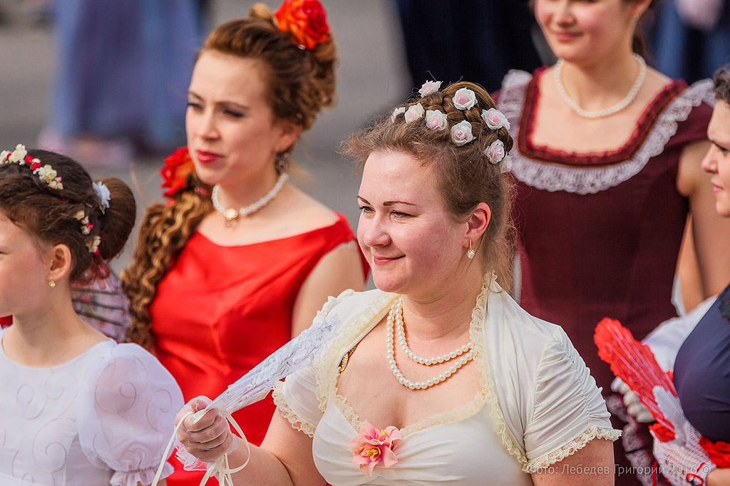 Праздник начался с костюмированного шествия по городу. Участники бала – дамы и кавалеры, а также дети в вечерних нарядах и костюмах 19 века начали шествие от кинотеатра «Космос», прогуливаясь по аллее камней, и к началу бала грациозно вошли на главную площадь города, где их уже ожидало многочисленное количество зрителей. Бал по традиции начался с танца – шествия «Полонез», зрители заворожено рассматривали лица участников и их необычайно красивые костюмы.