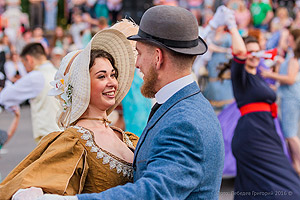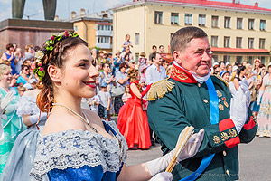 Надо отметить, что глава города Анатолий Николаевич Тимошенков не только выдержал дресс–код мероприятия, примерив на себя костюм императора, но также по традиции исполнил вместе с гостями бала первый танец бальной программы.